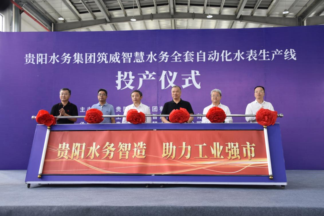 2023年9月6日,貴陽水務集團筑威智慧水務全套自動化水表生產(chǎn)線正式投產(chǎn),投產(chǎn)儀式在貴陽國家高新技術產(chǎn)業(yè)開發(fā)區(qū)沙文生態(tài)科技產(chǎn)業(yè)園舉行。貴陽市人民政府副市長冉斌,貴州省水利投資(集團)有限責任公司副總經(jīng)理曾文平,貴陽市水務管理局、貴陽市市場監(jiān)管局、高新開發(fā)區(qū)黨工委、貴陽市投資促進局、貴陽市政府駐上海辦事處、貴州省供水排水協(xié)會、貴州省水利協(xié)會相關領導出席投產(chǎn)儀式。貴陽水務集團有限公司黨委書記、董事長李仕勇介紹產(chǎn)線投產(chǎn)情況,上海威派格智慧水務股份有限公司董事長李紀璽致辭,貴陽水務集團有限公司黨委副書記、總經(jīng)理張朝虎主持投產(chǎn)儀式。